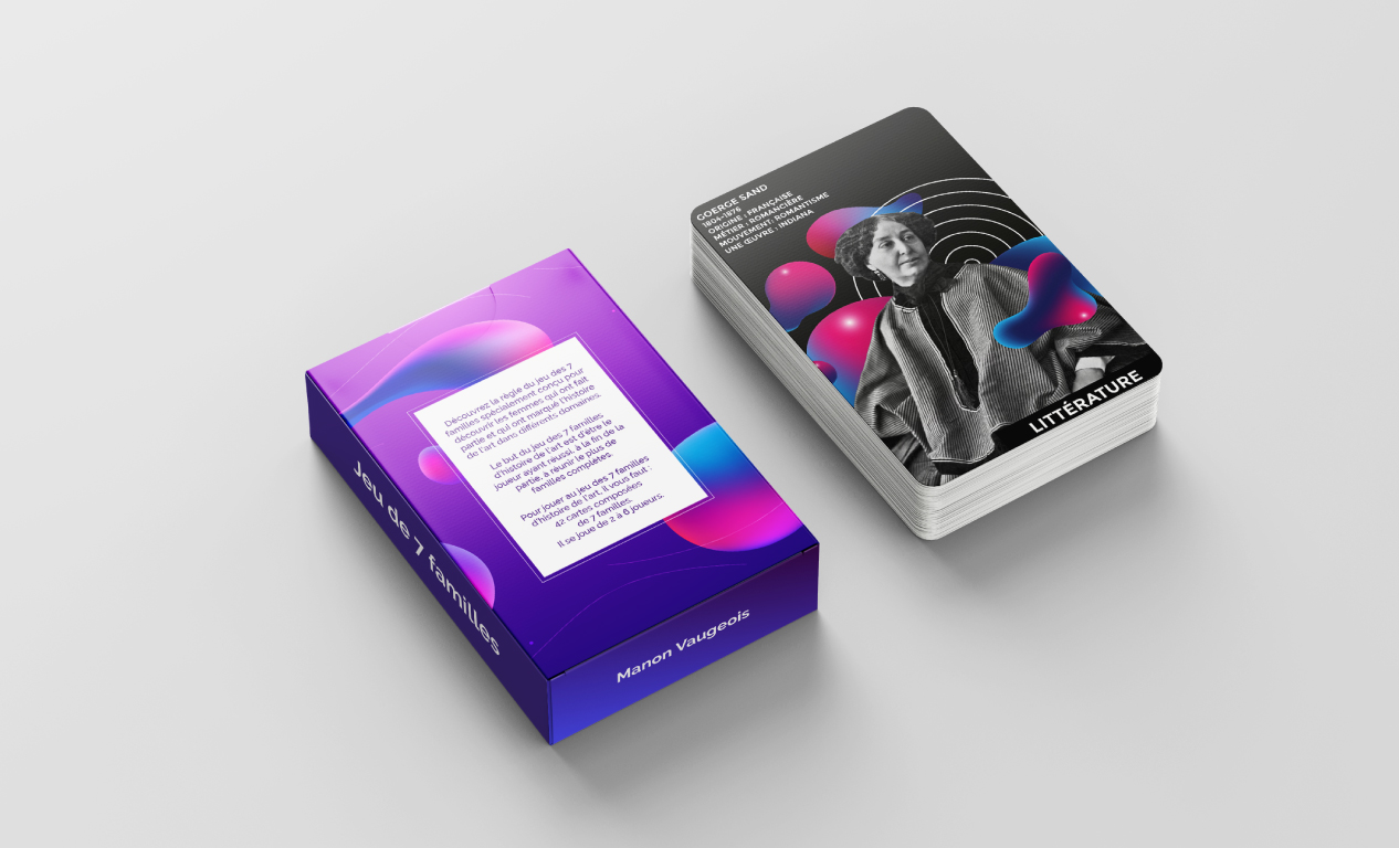 Prenez connaissance de la règle du jeu des 7 familles spécialement conçu pour découvrir les femmes qui ont fait partie et qui ont marqué l’histoire de l’art dans différents domaines.