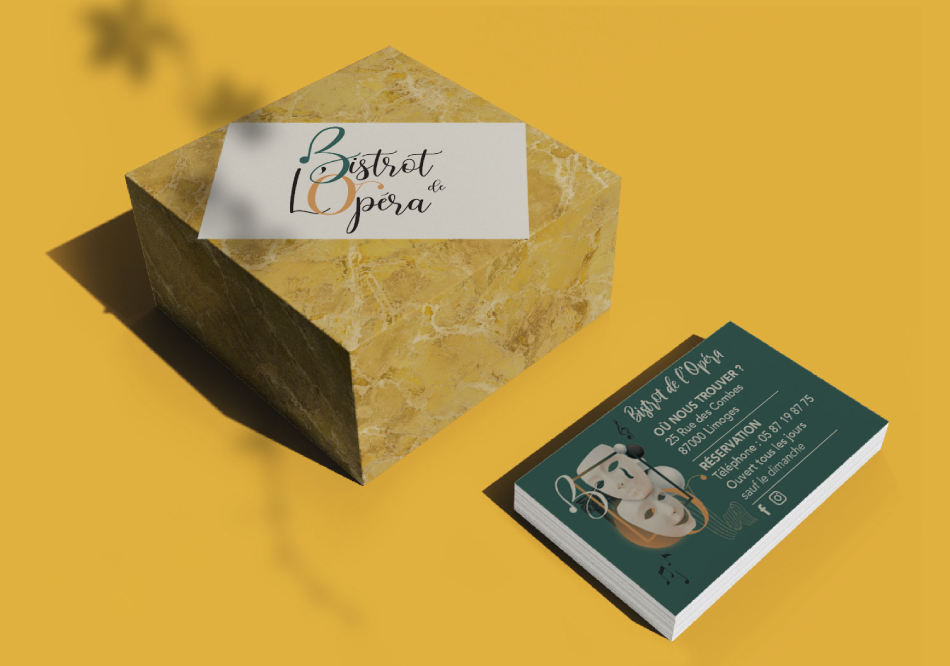 Un logotype et une charte graphique sont prévus, ainsi que des cartes de visite. C’est la base de l’identité Graphique du Bistrot de l’Opéra, le visuel qui va les définir en tant qu’entité.