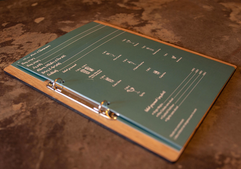 Grâce à ses ligatures, cette typographie incarne la transmission qui a lieu lorsque les clients mangent au bistrot.