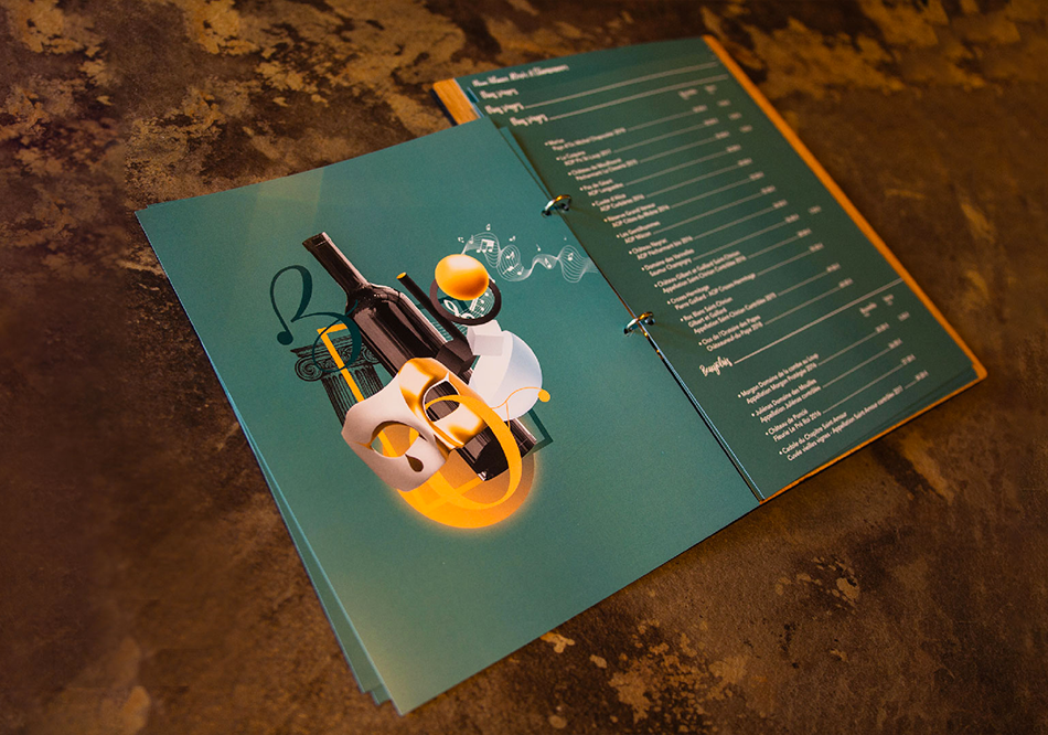 La lettre B a été retravaillée afin d’avoir une note de musique à l’intérieur de celle-ci. En effet, la note de musique est très présente à l’intérieur du bistrot dans la décoration, par le biais de partitions sur les murs. C’est aussi ça un logotype, représenter l’énergie d’un lieu.