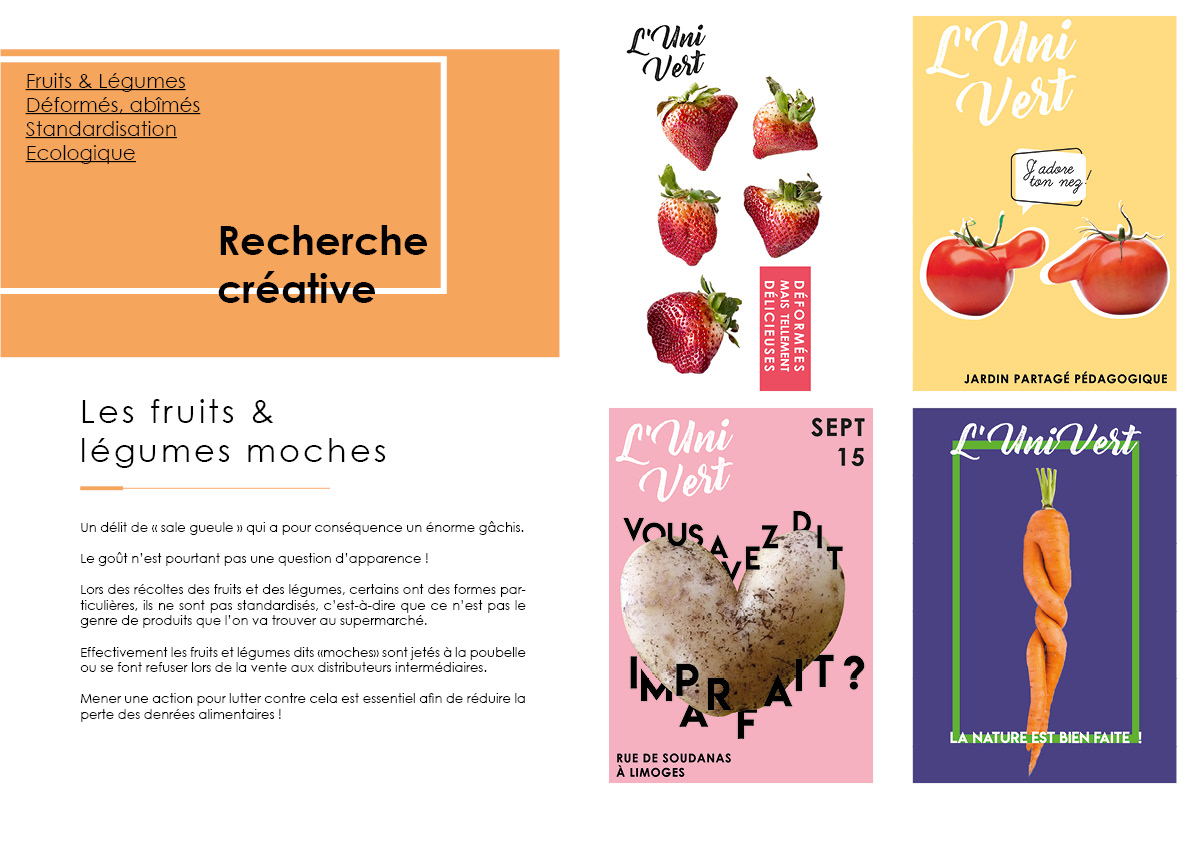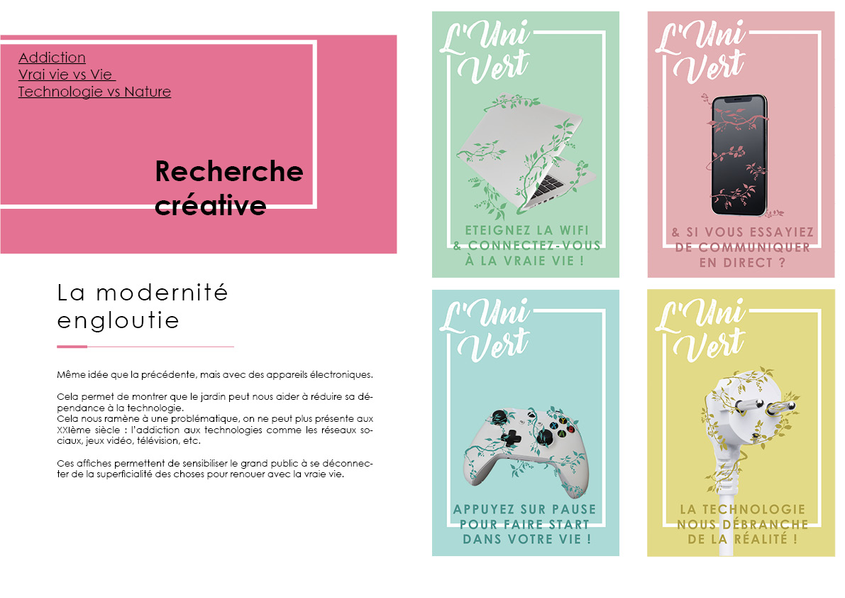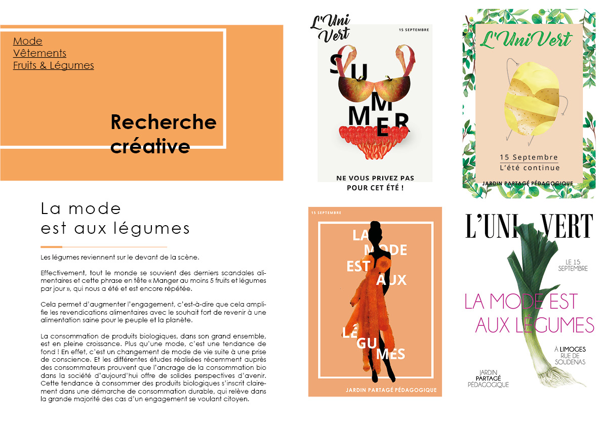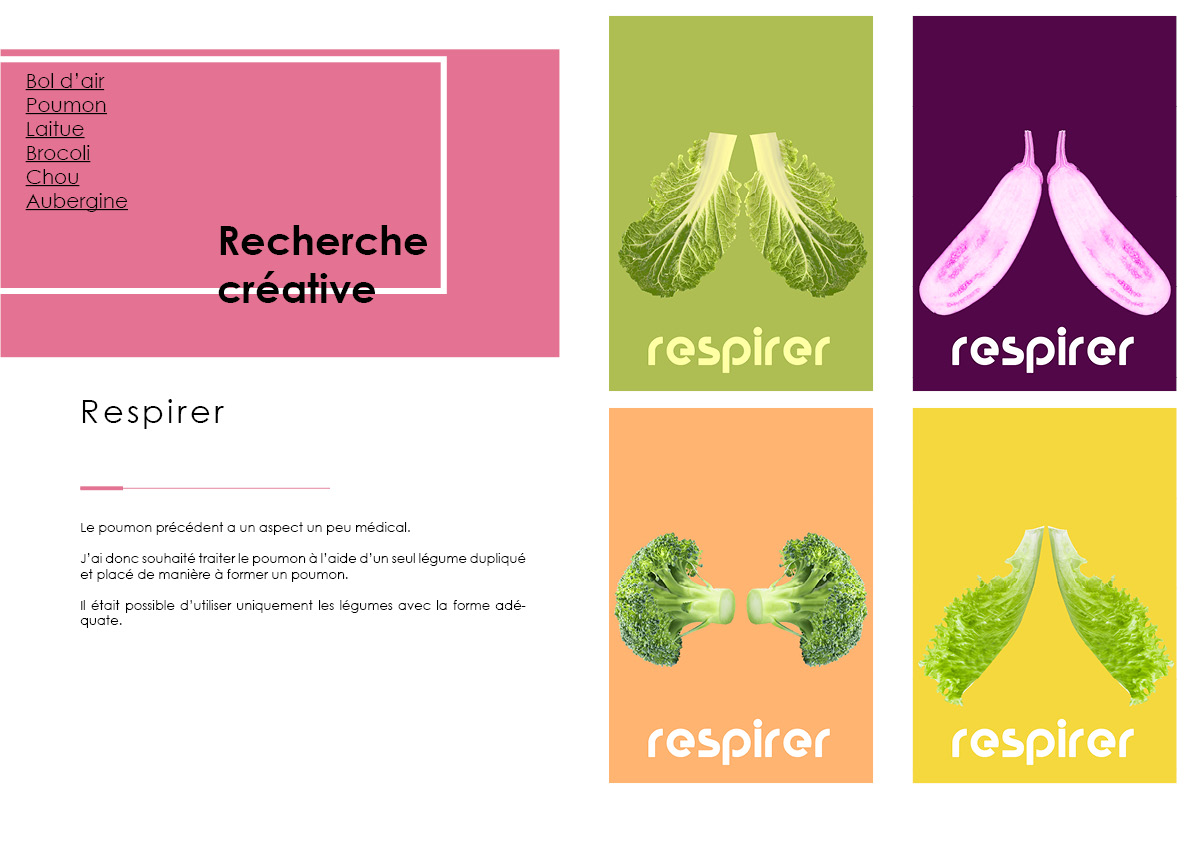 C’est un projet fictif complet avec la création du cahier des charges, puis la rédaction d’une stratégie de communication. Il a été suivi de recherches créatives graphiques et il a abouti sur le développement créatif. Ce projet a été conclu par un oral devant un jury en fin d’année.