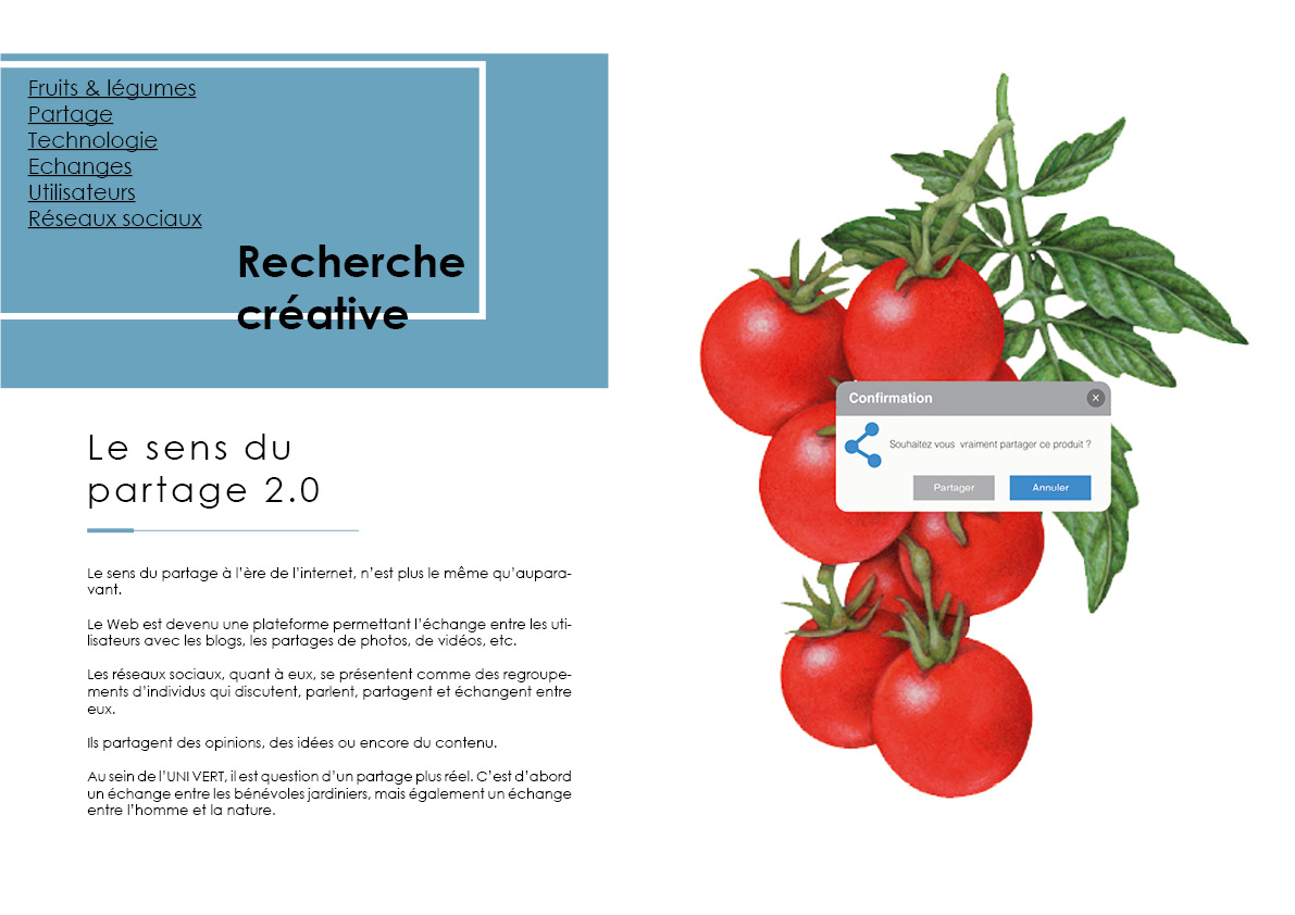 Toutes les valeurs que l’UNIVERT souhaite véhiculer sont axées autour de la pratique du jardinage. Le jardinage est une pratique ancienne qui attire peu les nouvelles générations. Récemment, avec toutes les actualités et sensibilisations autour de l’environnement, la génération Y commence à s’intéresser au végétal. En effet, la génération Y est sensible aux impacts économiques, environnementaux des plantes et à leurs effets sur la santé et le bien-être. Il est essentiel que cet intérêt atteigne toutes les générations. De plus, le terme « écologie » est très tendance de nos jours. Il paraît important de tendre vers le retour à la nature afin que les mentalités évoluent et qu’une prise de conscience ait lieu. Les légumes dans les supermarchés sont souvent critiqués pour être imprégnés de pesticides, OGM et insecticides. Heureusement, les mentalités changent progressivement, les citoyens prennent conscience de l’importance de manger des fruits et légumes de saison, non traités. Un bel exemple : la campagne de sensibilisation d’Intermarché qui met en avant les fruits et légumes « moches ».